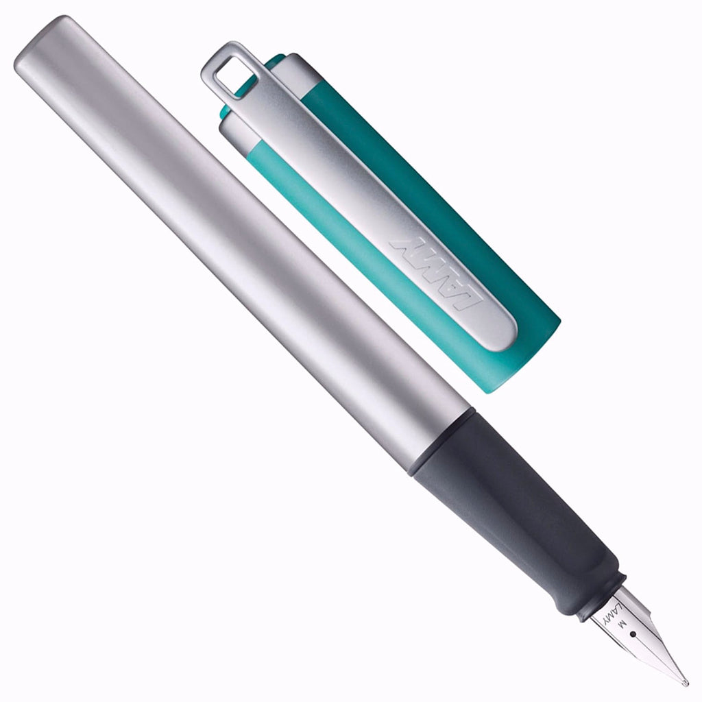 The LAMY nexx Green Fountain Pen is a simply lies comfortably in the hand all round and makes even long writing sessions entirely easy. The ergonomic grip is soft and non-slip and ensures relaxed hands over many pages. In addition, it supports an ideal hand position without constricting. The overall feel of the fountain pen is as light as the writing experience itself: the triangular body is made of aluminium and thus has a low weight, is robust and does not roll off the table thanks to its shape. A cap made of reinforced plastic with a metal clip makes the LAMY nexx an all-round uncomplicated everyday fountain pen.