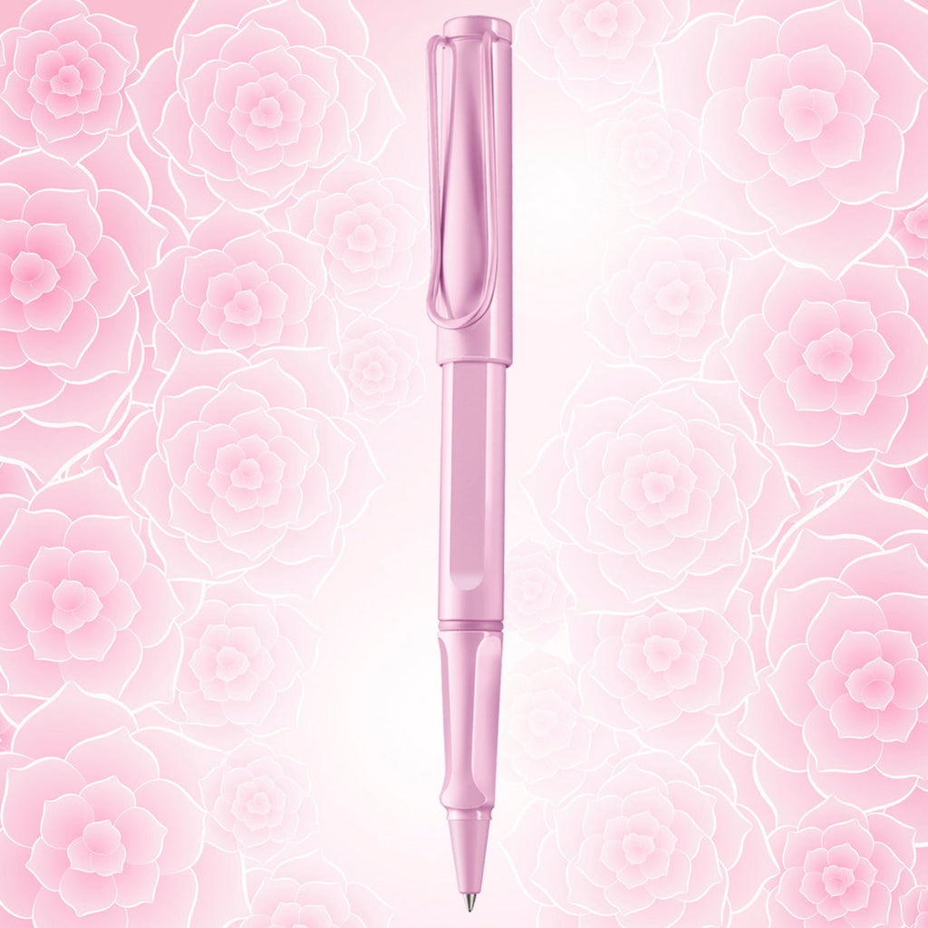 The Lamy Safari Light Rose Roller Ball Pen is a Special Edition 2023. The LAMY Safari range incorporates functional modern design with a lightweight, durable plastic to create a reliable, robust, classic Roller Ball Pen suitable for beginners and experts alike. Initially designed for students, the LAMY safari rapidly became a staple for Roller Ball Pen lovers of all ages. With a click-cap mechanism for effortless usability and distinctive recessed grip to ensure comfort for long note-taking sessions, the Safari is the perfect companion for the everyday writer. Clipping is a breeze with a characteristic wide metal clip that won't catch on fabrics. Available in a range of classic and vibrant colours to start your collection, with special edition colours are released each year. Roller Ball Pen comes with LAMY M 63 M black refill.