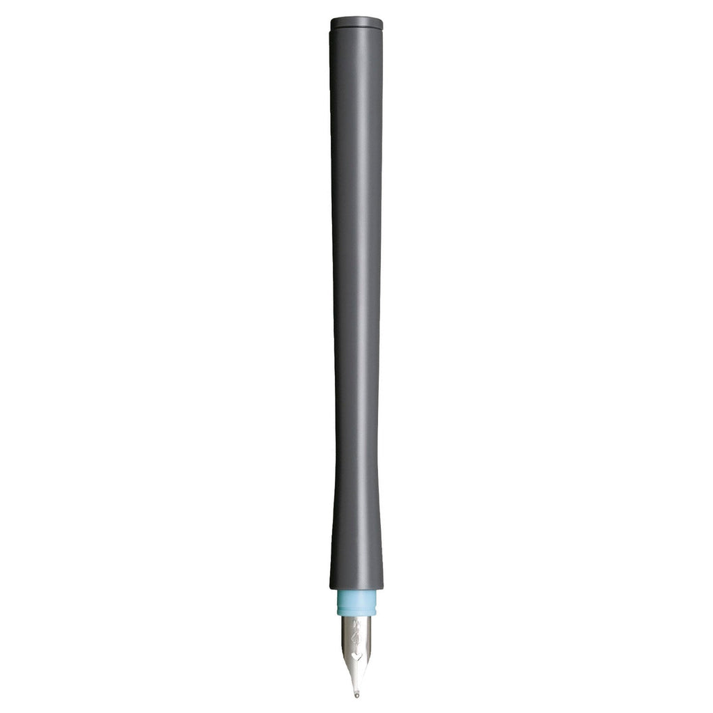 The Sailor Hocoro Dip Pen Gray is a unique and elegant writing instrument. The Sailor Hocoro dip pen allows you to enjoy a wide variety of fountain pen ink colors without the conventional messy fuss. The Hocoro is designed with ease in mind. After using, simply rinse the nib with water and wipe it dry, and you're ready to switch to the next ink color! What's more, the Hocoro Dip Pens are compatible with any type of fountain pen inks and various other types of inks. This means you can use the inks you already love with your new Hocoro pen! These are a cleverly designed little thing though. The nibs are designed to be swapped and as such, the nib is easily detachable. Simply screw it on and off. It doesn't have a cap but that detachable nib is able to be reversed and stored inside the barrel of the pen. Sailor "Hocoro" Dip Pens are available in five different steel nib sizes (Fine, Medium, 1.0mm Calligraphy, 2.0mm Calligraphy, and Fude), each with a different color accent. You can purchase spare nibs or barrels to mix & match to your heart's content, allowing you to explore and enjoy a multitude of inks and expression styles. This pen comes with a Gray barrel and a Medium steel nib with a blue accent.