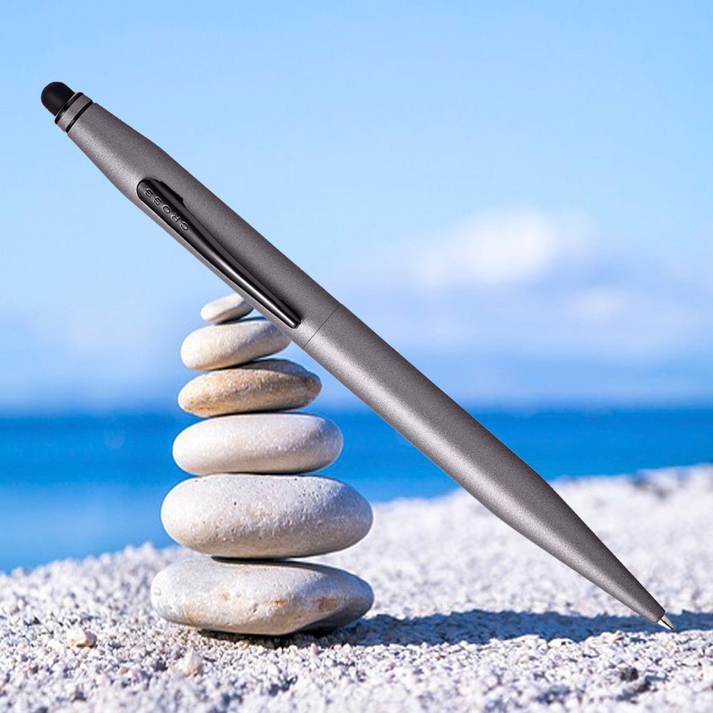 The Cross Tech2 Titanium Grey Ballpoint Pen is a sleek and functional writing instrument that features a dual-purpose design. It combines a smooth ballpoint pen with a stylus for touchscreen devices, making it versatile for both digital and traditional writing. The Ballpoint pen features is a Classic Titanium Grey finish body, accented with satin black appointments. This pen is perfect for professionals who need to switch between digital devices and paper, offering the convenience of two tools in one. Its Ballpoint Pen design also makes it an ideal gift option for corporate occasions or personal use.