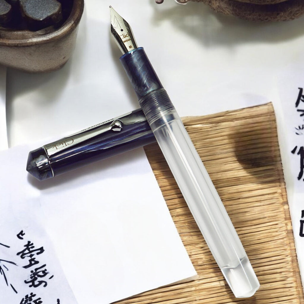 The Click Aristocrat HT Fountain Pen is a transparent Body With Marble texture cap & grip section. CLICK are Indian manufactures of quality Fountain Pens. The pen is completely handcrafted with chrome plated. All Click Pens have classic designs with a modern twist. Pen comes fitted with converter & 2 long blue cartridges are also supplied with pen. Pen is designed with a unique 3 in 1 ink filling mechanism. pen can be used as a eyedropper pen (u can fill ink directly into barrel) or u can use converter with pen or u can also use cartridge with the pen, that is really a very unique thing of this pen. Smooth writing high quality nib. The Aristocrat series is available exclusively as a fountain pen, with a choice of Extra Fine, Fine, Medium, Broad, Zoom & Fine Flex nib widths.