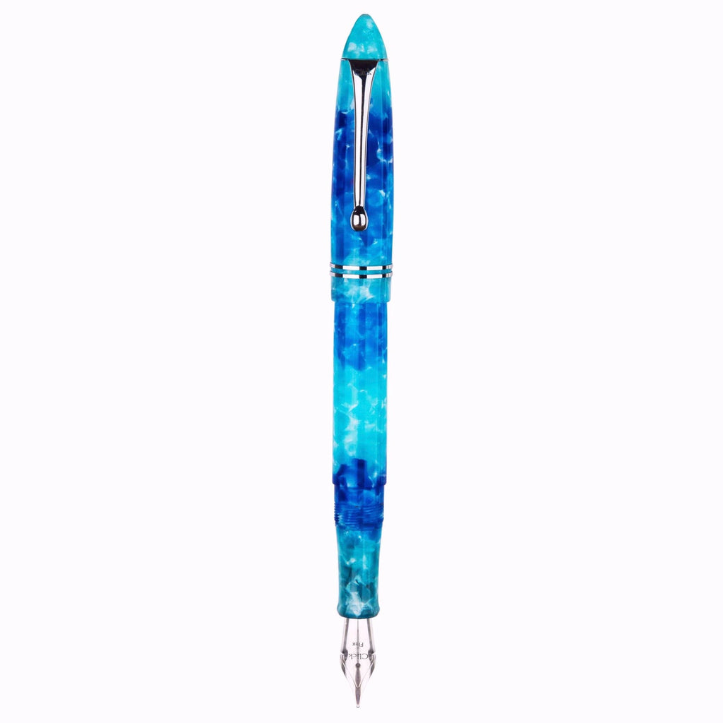 In general I like Click pens and especially their nibs. This one I bought for the beautiful acrylic. I am using it with a Diamine Green Ivy Shimmer ink and nib is performing very nicely.