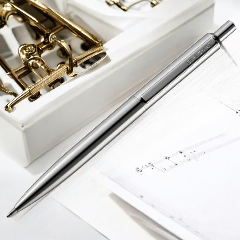 Distinguished among the Diplomat community for its high quality. Diplomat Magnum Equipment is a combination with all-metal casing and polished chrome fittings. Smart and curved with a strong hooded clip design and fitted with a 0.7MM HB Lead. This affordable Mechanical Pencil is perfect for everyday writing and makes a great gift for all occasions. Diplomat Equipment Mechanical Pencil Stainless Steel comes packed in a nice Diplomat Gift Box. Diplomat Equipment series covers is available in Ball pen also with various colour options.