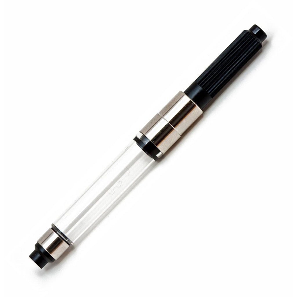 This is a high quality fountain pen converter from Schmidt, Germany. This silver-accented converter turns your cartridge pen into a plunger fountain pen. It fits onto any compatible cartridge/converter pen. The threaded section ensures a tight fit and secures to your pen. It replaces the ink cartridges and has a satisfyingly large capacity. Easily refillable, simply draw the ink up through the nib using the twist-action mechanism. Use this converter with bottled ink for pages of writing pleasure. The Schmidt Converter K5 Plastic converter holds 0.8ml of ink. The fit and finish of this cartridge is excellent and it holds plenty of ink.