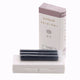The Sailor Shikiori Sansui Ink Cartridge Kamoshika is a pack of 3 fountain pen ink cartridges. This collection is inspired by the serene beauty of nature and the changing seasons, encapsulated in four breathtaking colors that tell a story of time and transformation. Symbolizing the serene wisdom of the forest’s philosopher, the serow, Kamoshika embodies the calm poise of winter. This color captures the serow’s graceful endurance through the snowy landscape. These proprietary cartridges fit all Sailor cartridge/converter fountain pens (except the Chalana). Each cartridge is labeled with the name of the ink, and a directional arrow indicating how to insert the cartridge into your pen. The three cartridges comes in a portable white carrying case.
