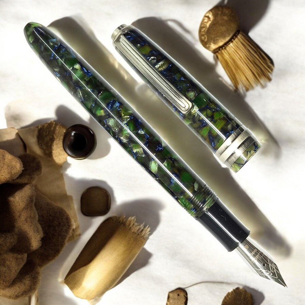 In general I like Click pens and especially their nibs. This one I bought for the beautiful acrylic. I am using it with a Diamine Green Ivy Shimmer ink and nib is performing very nicely.