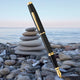 The Coventry pen impresses with its strong profile, rich sheen, and polished contrasting appointments. This stylish writing instrument is the perfect gift for those who want to elevate their writing experience every day. The pen features a Rich black lacquer with polished gold appointments and signature conical top giving it a refined, modern look. It comes with a Hand-finished precision-ground gold plated stainless steel nib and Includes 1 Black Fountain Pen Cartridges (#8921)