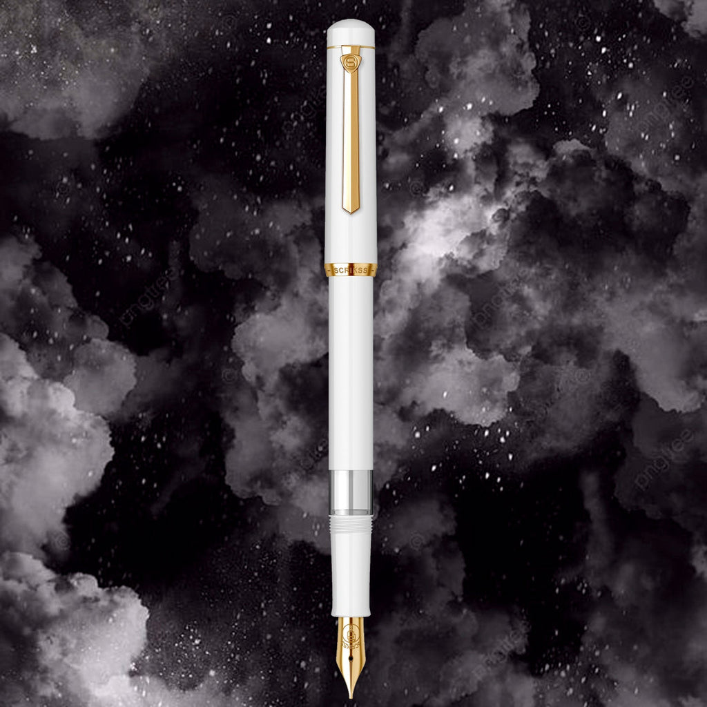 The Scrikss 419 White GT Fountain Pen is a classic, an authentic writing tool, a remake in a limited edition of the legendary Scrikss 419 first produced in the early 1970s. The Fountain Pen features is Scratch and dent resistant acrylic resin body, with a white glossy finish. As well as the piston mechanism of the ink tank that is integrated from the factory into the body of the pen. Gold Plated Stainless steel nib, having on top an iridium point. This pen appeals to nostalgics, as well as collectors. It is not intended to be "a pretentious writer", instead it benefits from a way above average reliability.