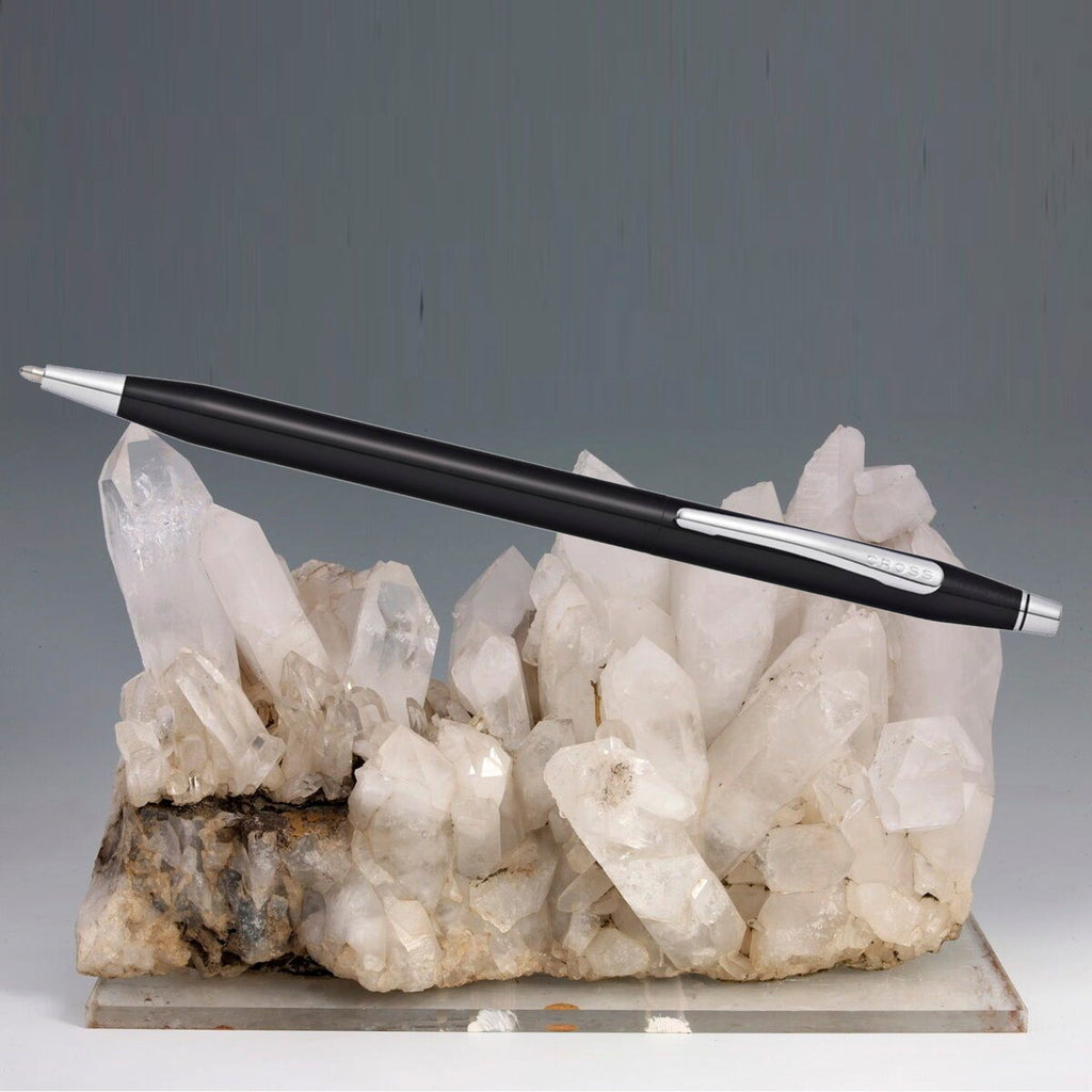 The Cross Classic Century Glossy Black CT Ballpoint Pen is a sleek and sophisticated writing instrument. Part of the Classic Century collection, which is known for its timeless design and slim profile, this pen features a glossy black finish brass body accentuated by chrome plated appointments that gives it a modern, elegant look. The Classic Century series is characterized by its iconic slim silhouette, making this pen comfortable to hold and easy to carry. It has a reliable twist-action mechanism that smoothly extends and retracts the writing tip. This pen is ideal for those who appreciate a combination of classic design and modern elegance. Its refined appearance makes it suitable for professional settings or as a stylish accessory.