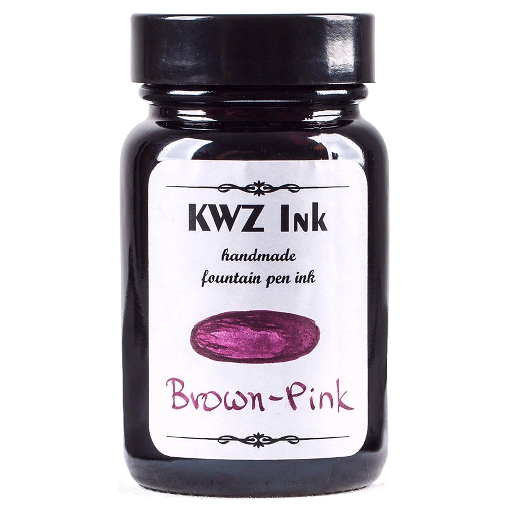 The KWZ standard inks are based only on dyes that are easily soluble in water. The result is that the ink does not have virtually no water resistance. The KWZ ink comes in 60ml glass ink bottles and is available in 40 colors. The amber glass of its bottle protects the ink for the UV light. KWZ Brown Pink is a dark grape purple with low shading.