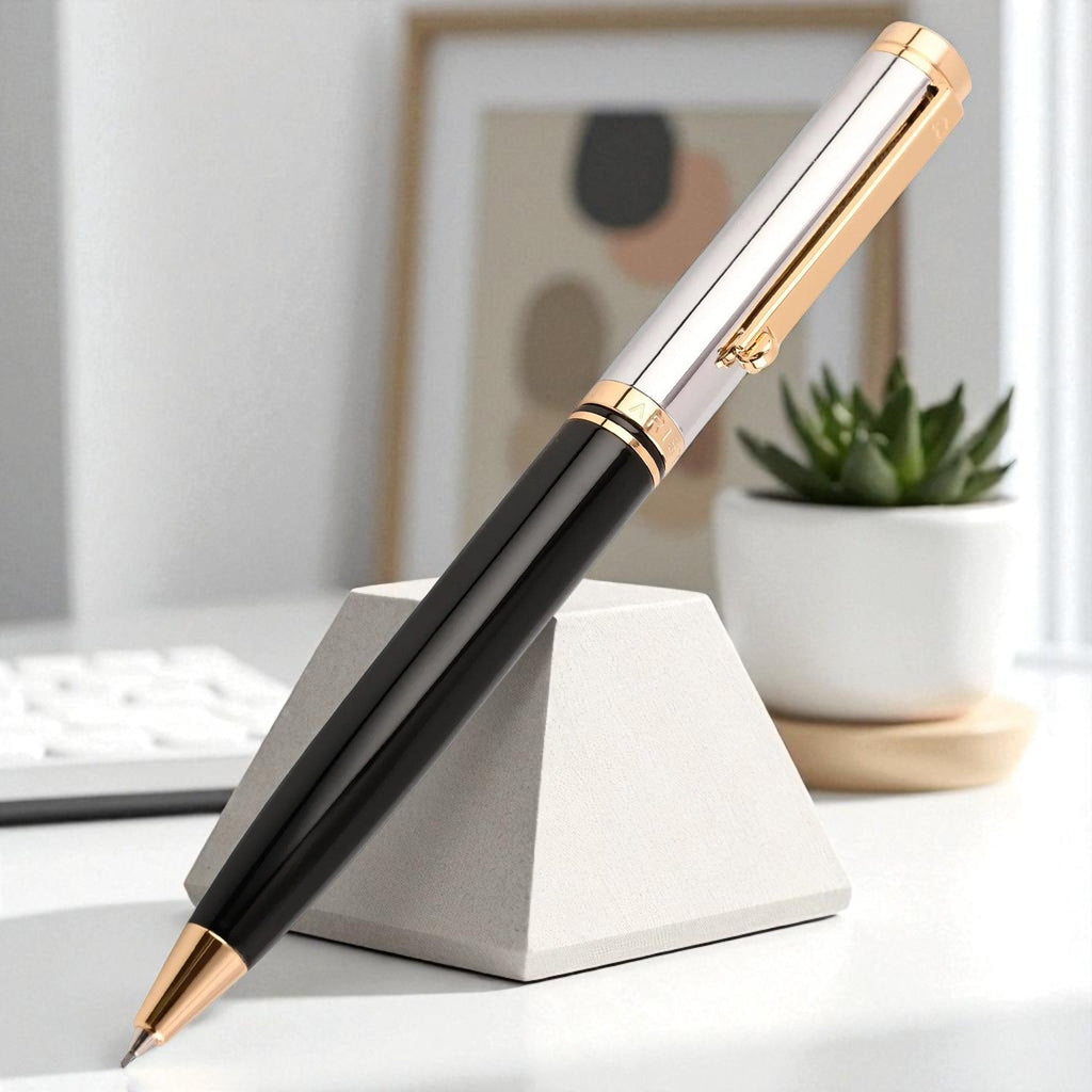 The Arista Switch Black Chrome GT Mechanical Pencil is a distinguished writing instrument that combines timeless elegance with everyday functionality. Designed for professionals, students, and stationery enthusiasts, this pencil offers a refined writing experience complemented by its sophisticated design. Featuring a lustrous Black barrel and chrome cap accented with gold-plated trims, this pencil exudes a sense of luxury and sophistication. Crafted from high-quality materials, ensuring durability and a premium feel. Equipped with a 0.7mm premium polymer leads, providing a smooth and consistent writing experience suitable for both everyday use and special occasions. The innovative switch mechanism allows for easy lead advancement and retraction, providing a seamless writing experience. Comes with a removable maxi eraser for quick corrections.
