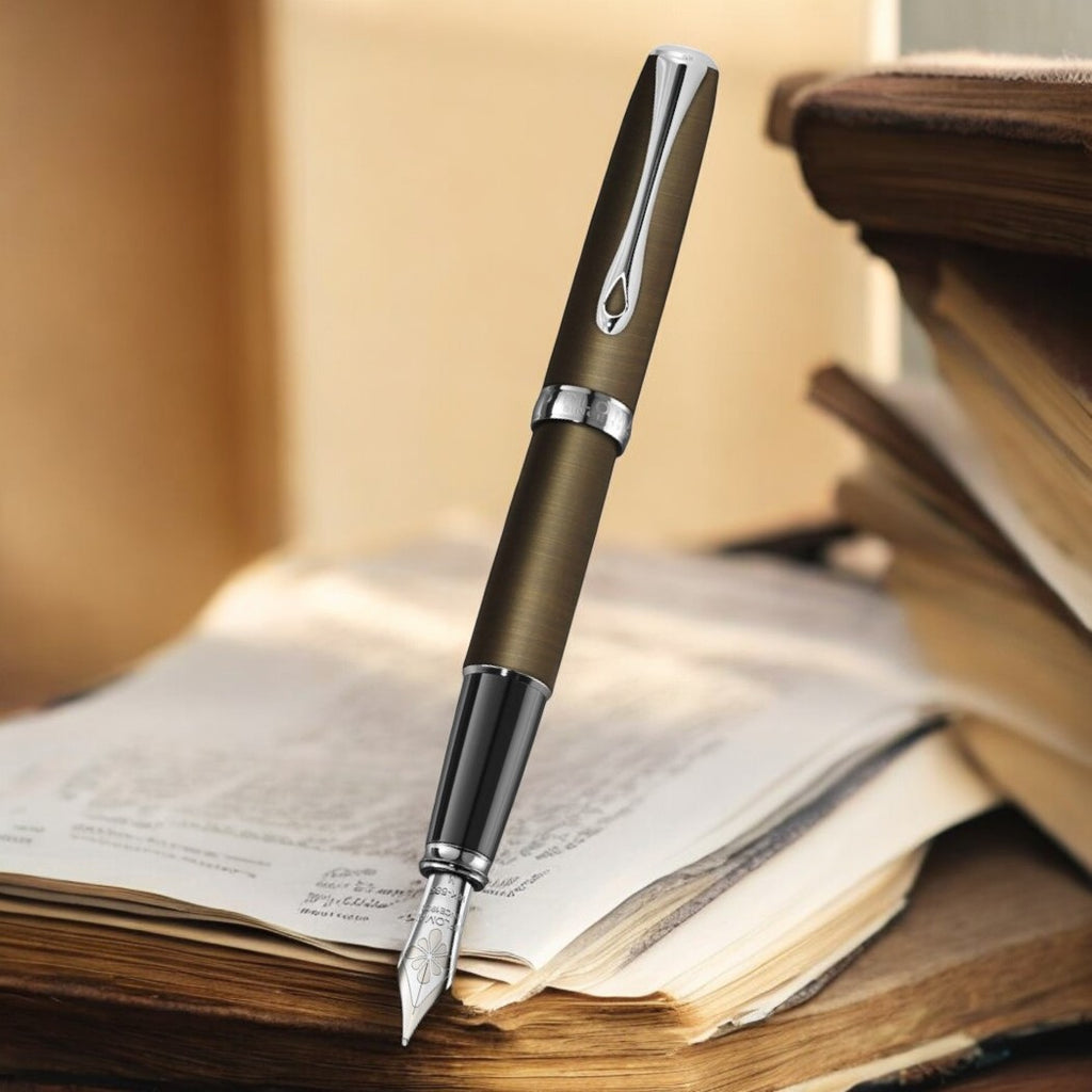 The Excellence A² series and its emblematic line now feature two new models with intensely modern and original colors, the Excellence A² Brass and Iron. The Oxyd Brass model, which is slightly oxidized, sports a champagne-like color that subtly reflects light. The Excellence A² Oxyd Iron, which is even more oxidized than the Brass model, has a charcoal gray color. For these new series, Diplomat added a modern twist to its traditional know-how. The polishing lines, which are visible on the instruments of both series, add to their rich texture and their overall brightness. These new models come in the form of a fountain pen (14 carat gold nib and stainless steel nib), a rollerball, a ballpoint and a mechanical pencil. Diplomat Excellence A2 Oxyd Brass Fountain Pen comes fitted with our precision Stainless Steel Nib. You get an option to choose from Extra Fine, Fine, Medium and Broad.