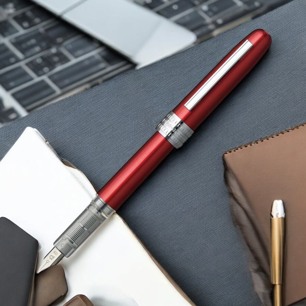 Platinum Plaisir Fountain Pen Red comes with Silver trim and has a Cartridge, Converter (Not included) filing mechanism. It comes enhanced with a Stainless Steel nib. Available in nib sizes Fine | Medium. The package contains 1 Fountain Pen, 1 Cartridge packed in a blister pack