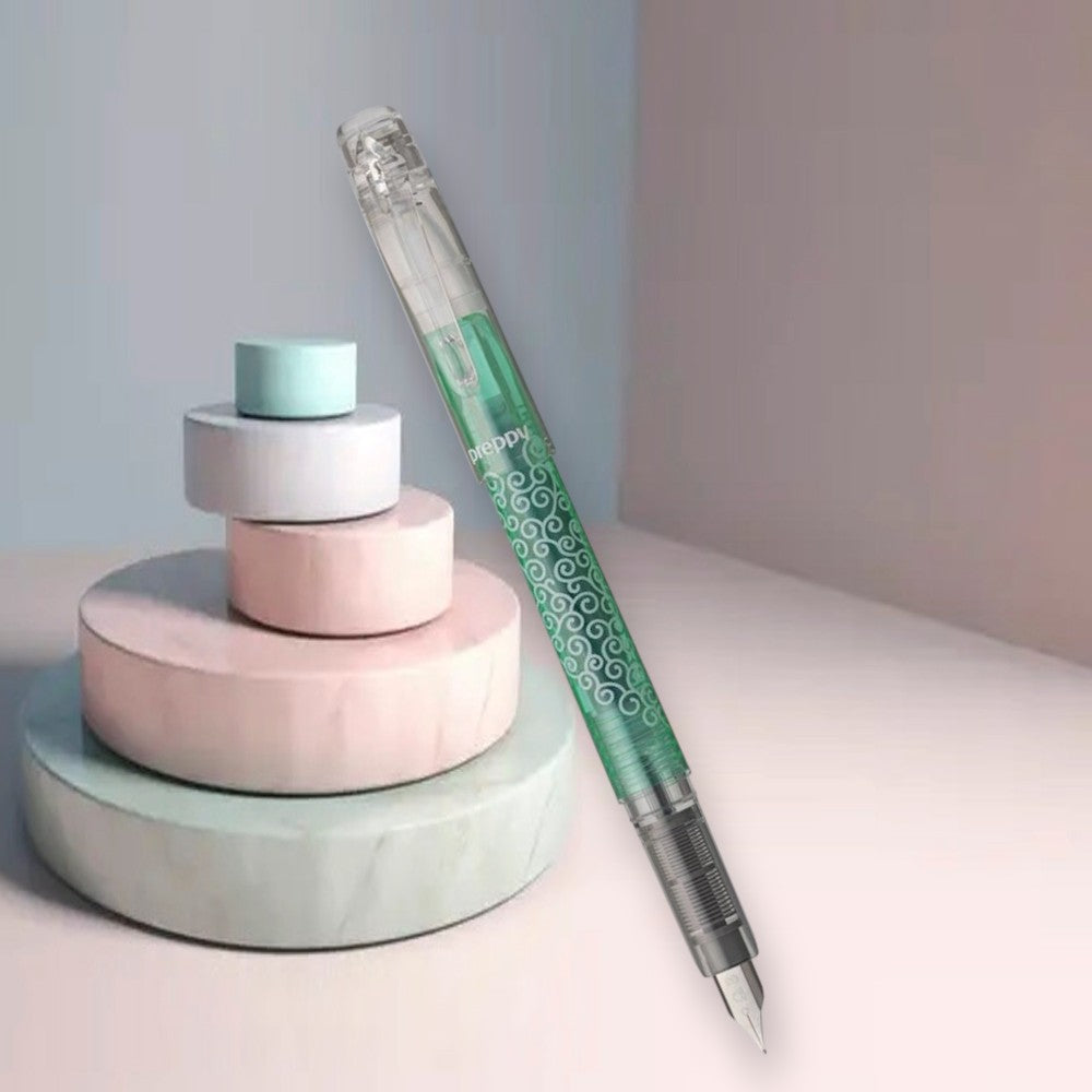 The Platinum Preppy WA is a 6 colour limited edition collection is themed on traditional Japanese patterns. A perfect value for money coming from the reputed house of Platinum pen. This is a great starter pen. The peppy colours and designs of Preppy are a hot favorite with the youth. The pen has a translucent body to help you gauge the ink usage. Drying of ink due to evaporation has been a major problem with fountain pens. The Preppy features Platinum's patented "Slip and Seal" cap design that keeps the nib from drying out for a year or longer without use. This makes it ideal for new fountain pen users and people who like to switch pens frequently.