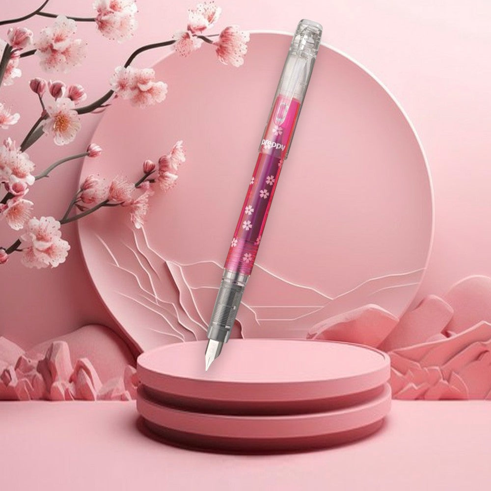 Platinum Preppy WA Fountain Pen Sakura Chirashi comes with Body colour trim and has a Cartridge, Converter (Not included) filing mechanism. It comes enhanced with a Stainless Steel nib. Available in nib size Fine. The package contains 1 Fountain Pen, 1 Cartridge packed in a blister pack
