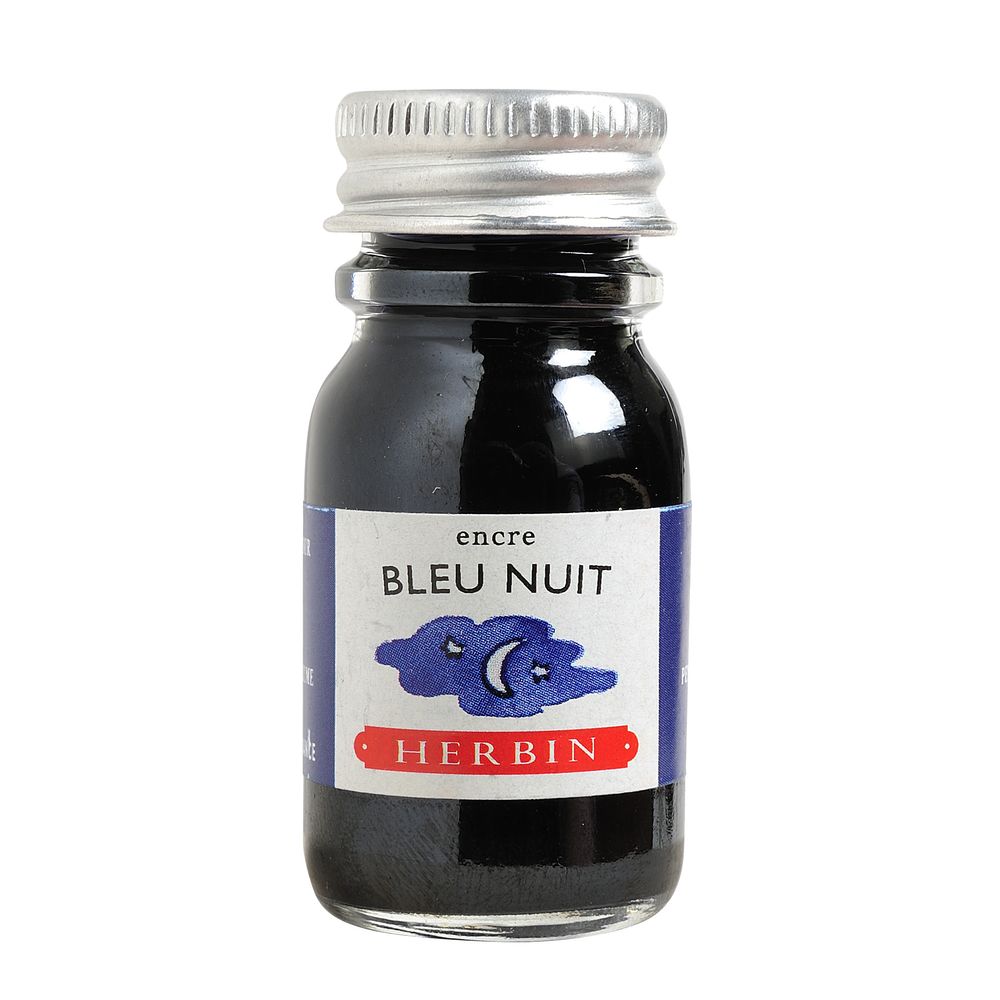 Herbin is the oldest name in pen inks in the world. "The Jewel of Inks" was created in Paris in 1670. Herbin uses all natural dyes in their fountain pen inks. They are mainly composed of water, humectant to limit drying at the level of the pen and preservative to preserve their qualities over time. This natural composition is reflected in the very neutral pH of the inks. The dyes used have been specially selected to offer the richest color range on the market. Finally these inks are finely filtered so as not to clog the pens. This 10ML Glass Bottle of Bleu Nuit fountain pen ink is a perfect size for testing the color and also can be very handy to use while travelling.